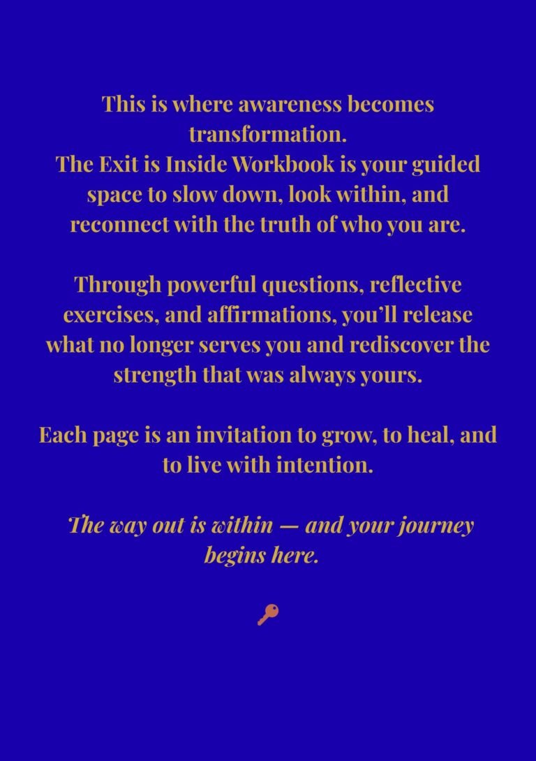 This isn’t just a book to read – it’s a space to enter. There are no right answers, no fixes – just a return to who you are. Through reflections and gentle exercises, you’ll discover what’s been hidden and remember your true self. It’s a space you enter. A space where questions replace noise, and silence becomes a teacher. This workbook is not about becoming someone new — It’s about coming back to you.